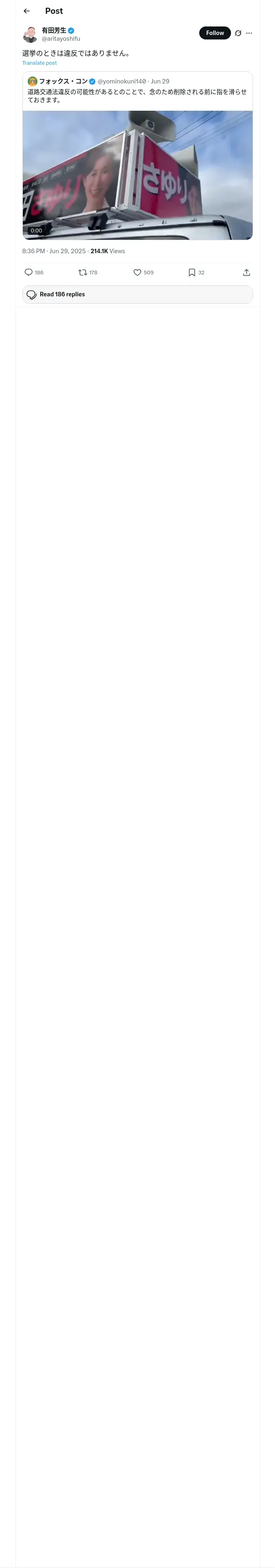 https://x.com:443/aritayoshifu/status/1939286794580721696
