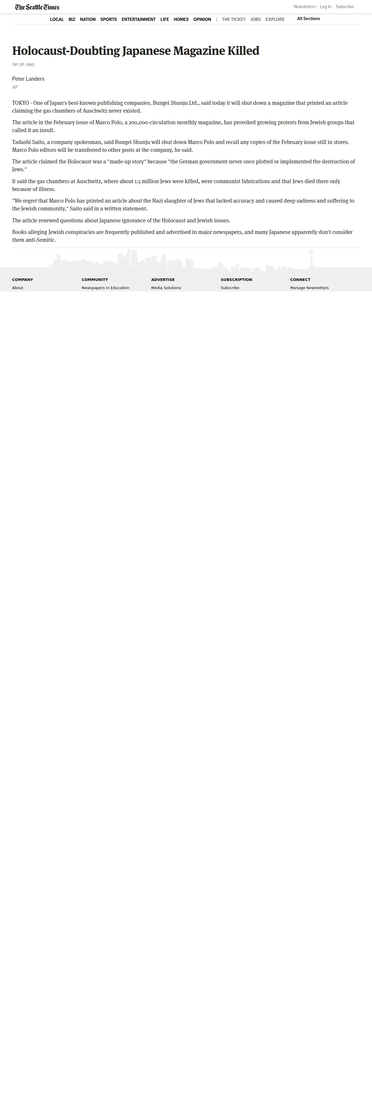 https://archive.seattletimes.com:443/archive/19950130/2102245/holocaust-doubting-japanese-magazine-killed