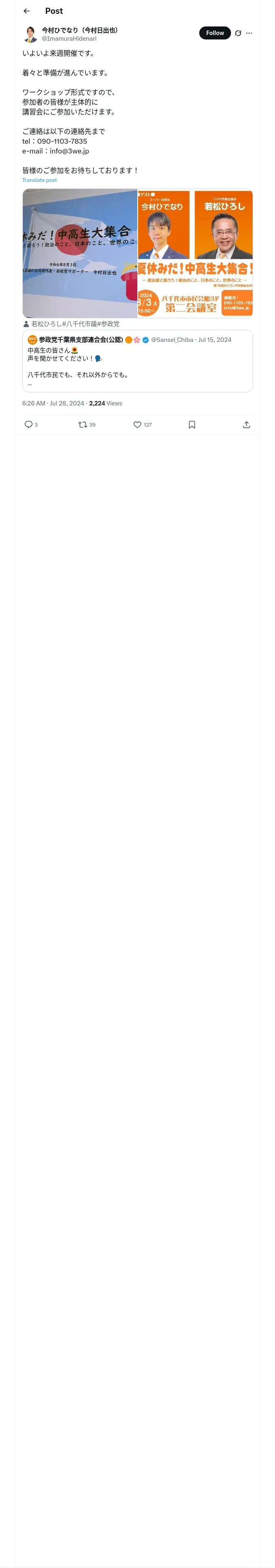 取得元URL: https://x.com:443/ImamuraHidenari/status/1817310615951790451
