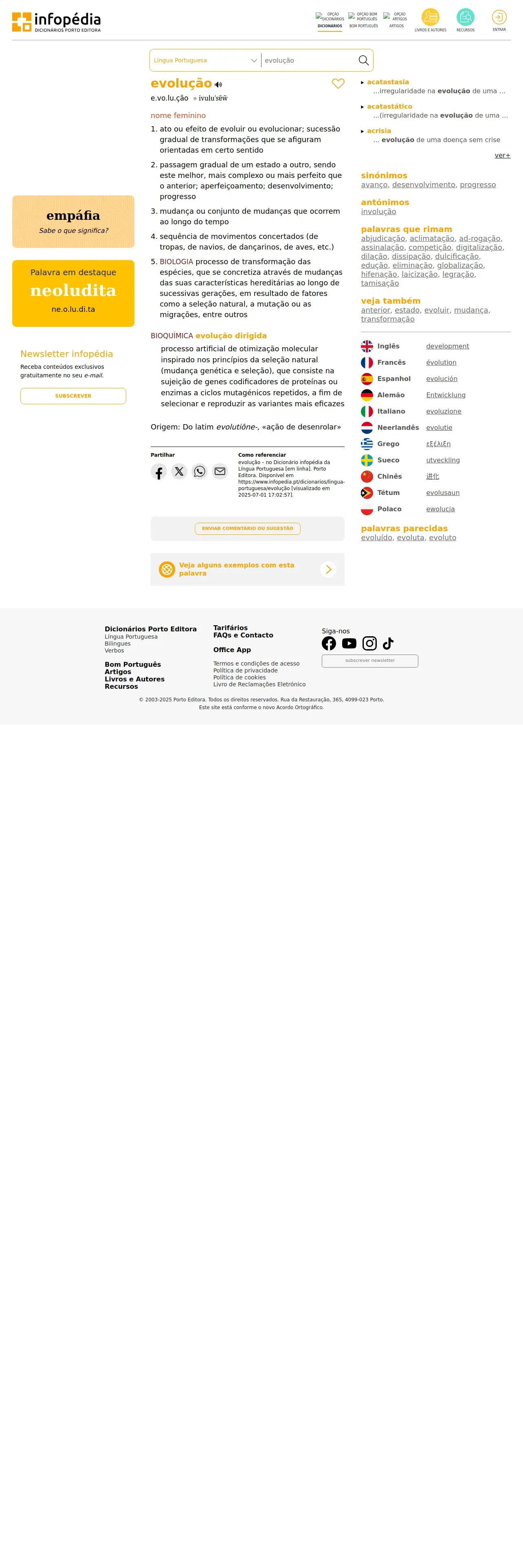 https://www.infopedia.pt:443/dicionarios/lingua-portuguesa/evolu%C3%A7%C3%A3o