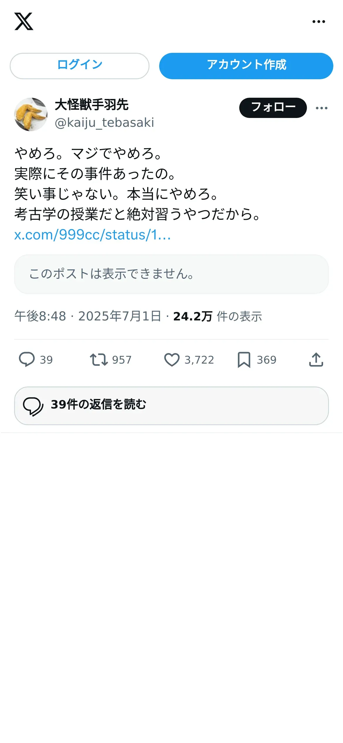 https://x.com:443/kaiju_tebasaki/status/1940014661250031820?t=v5XOhzayyE1OSSV89C8geA&s=19