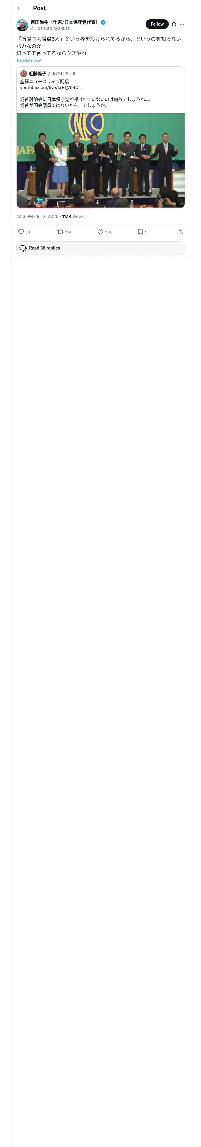 https://x.com:443/Hoshuto_hyakuta/status/1940310290174009595