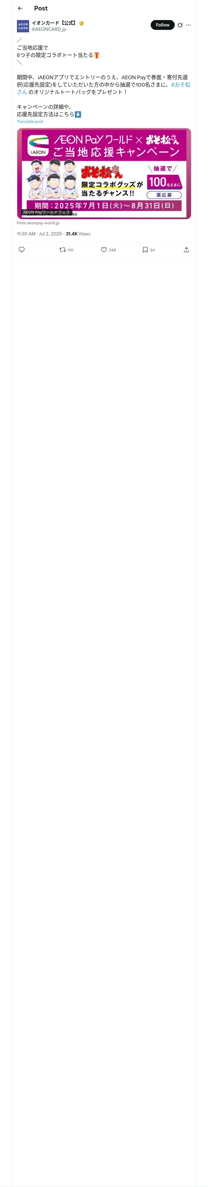 https://x.com:443/AEONCARD_jp/status/1940236483941867891