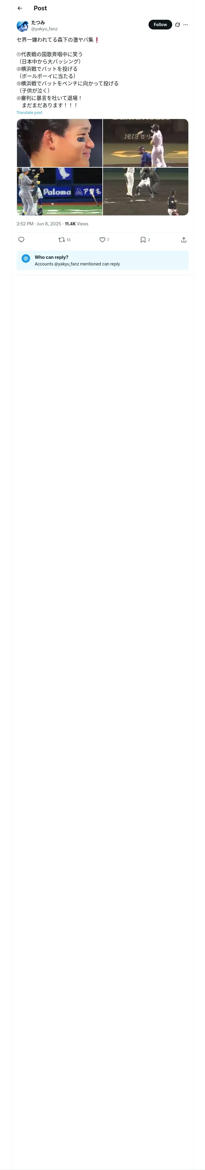 取得元URL: https://x.com:443/yakyu_fanz/status/1931590032747581891