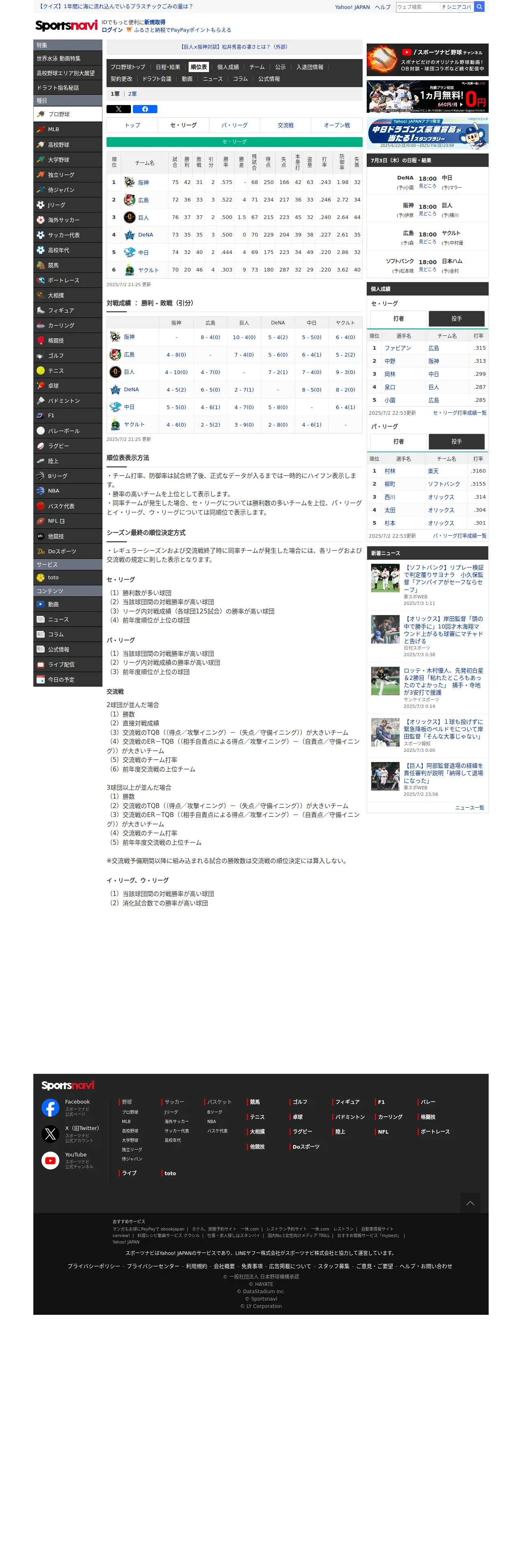 https://baseball.yahoo.co.jp:443/npb/standings/detail/1