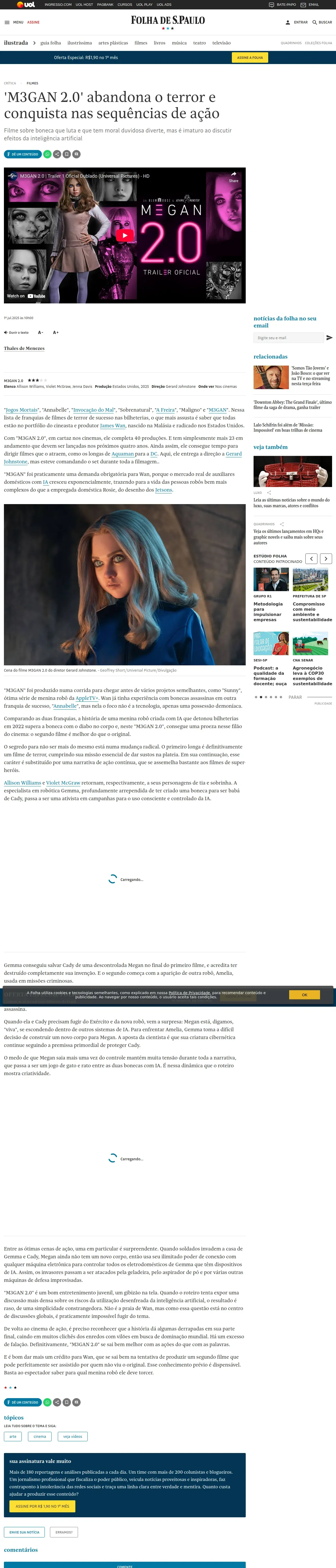 https://www1.folha.uol.com.br:443/ilustrada/2025/07/m3gan-20-abandona-o-terror-e-conquista-nas-sequencias-de-acao.shtml
