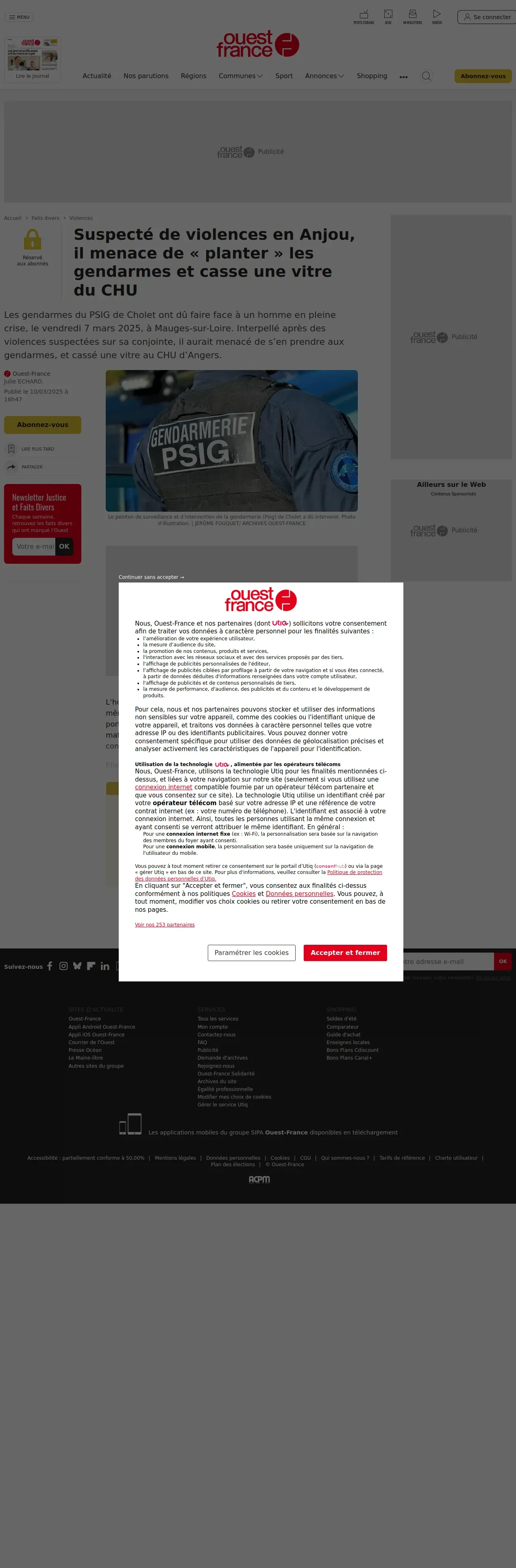https://www.ouest-france.fr:443/faits-divers/violences/suspecte-de-violences-en-anjou-il-menace-de-planter-les-gendarmes-et-casse-une-vitre-du-chu-48ce1aca-fdbf-11ef-84e6-97a4d0833d6d