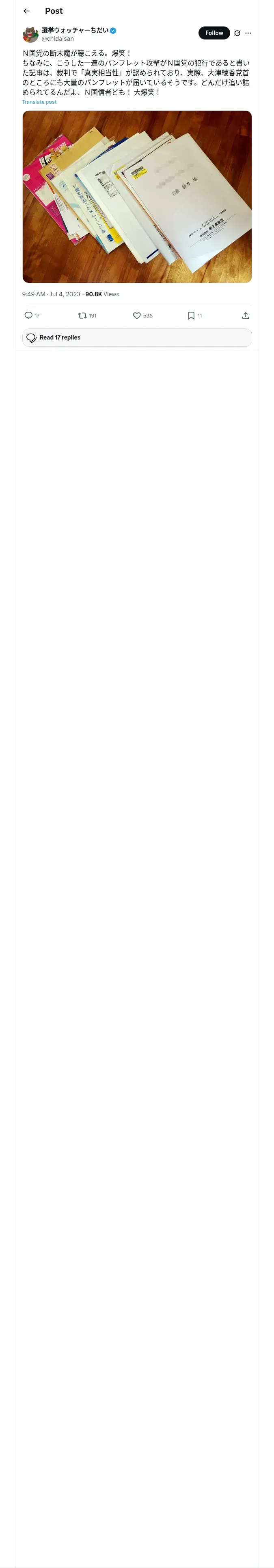 https://x.com:443/chidaisan/status/1676030518515867648