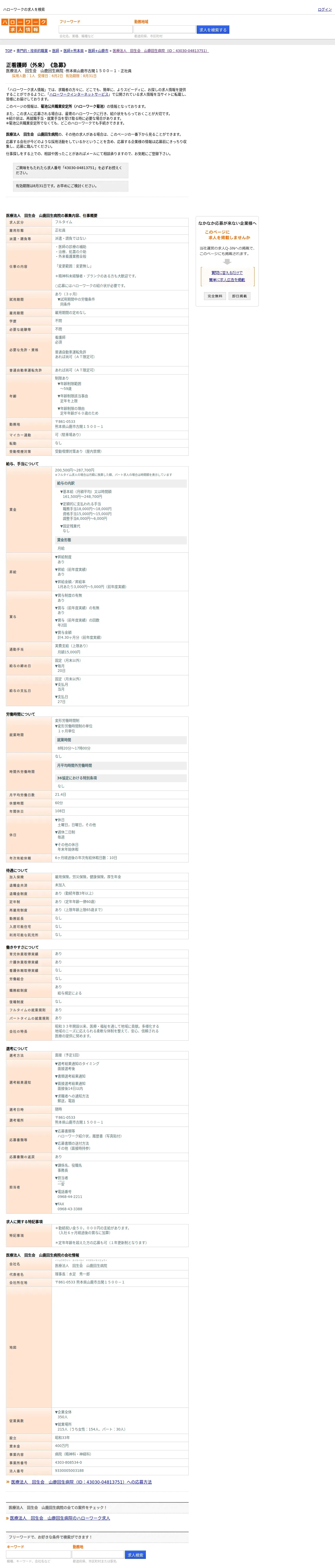 https://www.hellowork.careers:443/%E5%8C%BB%E7%99%82%E6%B3%95%E4%BA%BA%E3%80%80%E5%9B%9E%E7%94%9F%E4%BC%9A%E3%80%80%E5%B1%B1%E9%B9%BF%E5%9B%9E%E7%94%9F%E7%97%85%E9%99%A2%E3%81%A7%E3%81%AE%E6%AD%A3%E7%9C%8B%E8%AD%B7%E5%B8%AB%EF%BC%88%E5%A4%96%E6%9D%A5%EF%BC%89%E3%80%80%E3%80%8A%E6%80%A5%E5%8B%9F%E3%80%8B%E3%81%AE%E3%83%8F%E3%83%AD%E3%83%BC%E3%83%AF%E3%83%BC%E3%82%AF%E6%B1%82%E4%BA%BA%E6%83%85%E5%A0%B1%EF%BC%88%E7%86%8A%E6%9C%AC%E7%9C%8C%E5%B1%B1%E9%B9%BF%E5%B8%82%EF%BC%89-%2043030-04813751/
