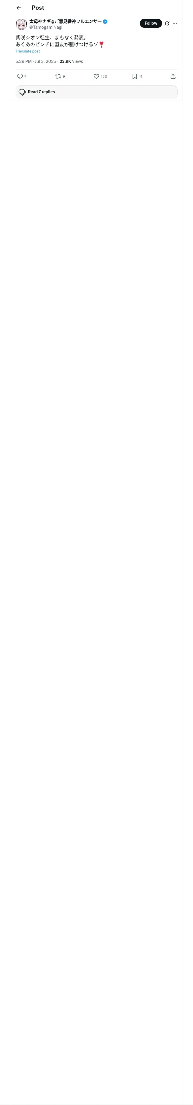 取得元URL: https://x.com:443/TamogamiNagi/status/1940689445566796204