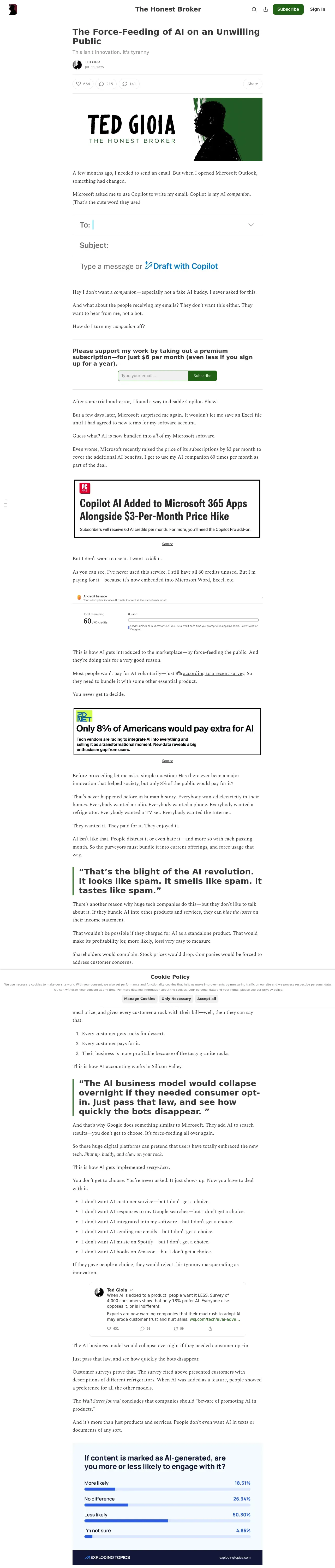https://www.honest-broker.com:443/p/the-force-feeding-of-ai-on-an-unwilling