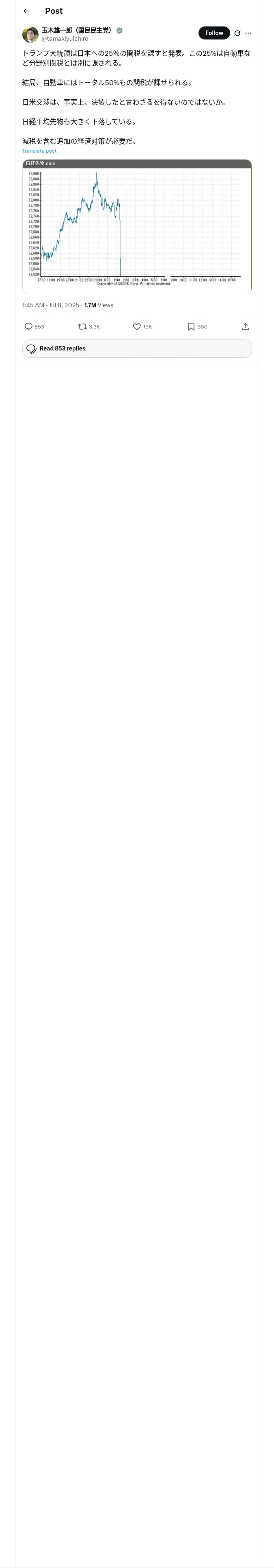 https://x.com:443/tamakiyuichiro/status/1942263631883968580