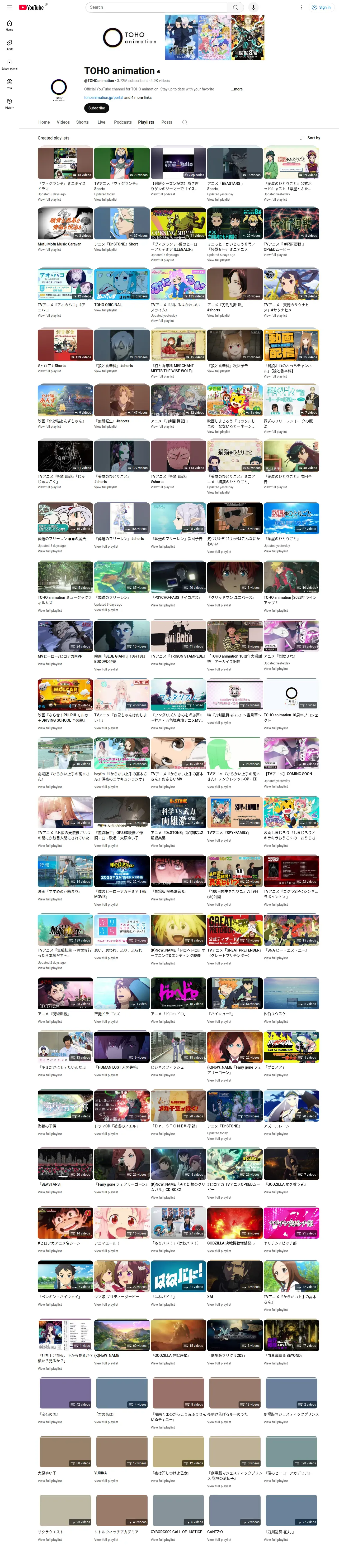 https://www.youtube.com:443/@TOHOanimation/playlists