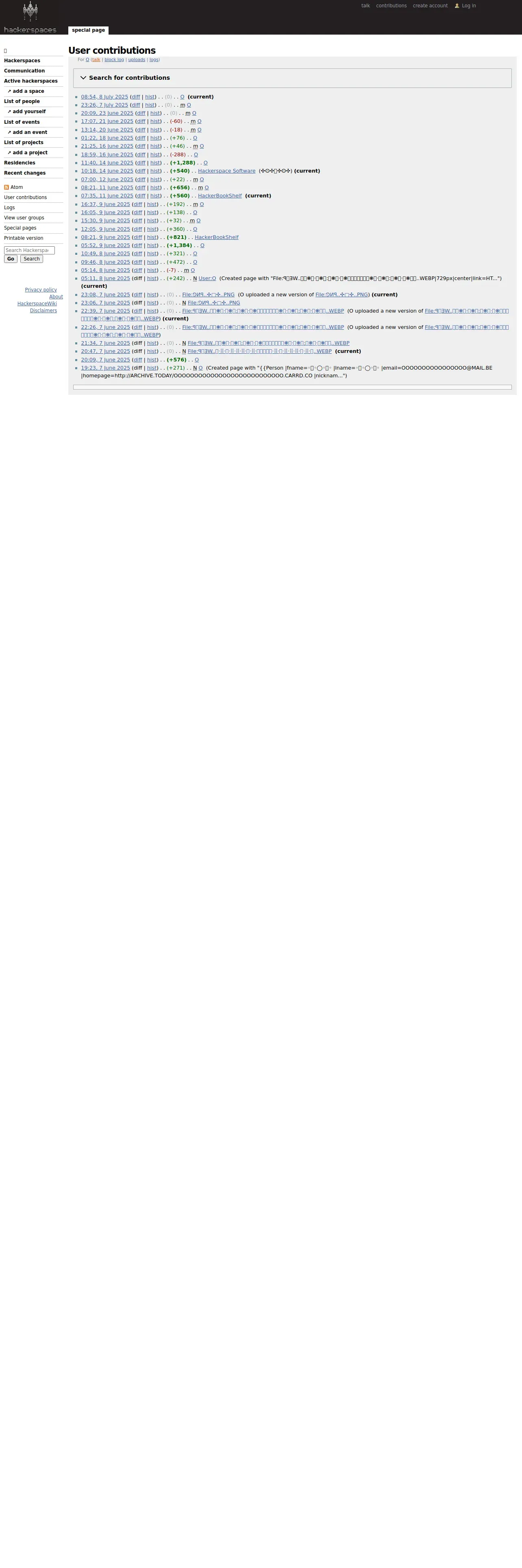 https://wiki.hackerspaces.org:443/Special:Contributions/O
