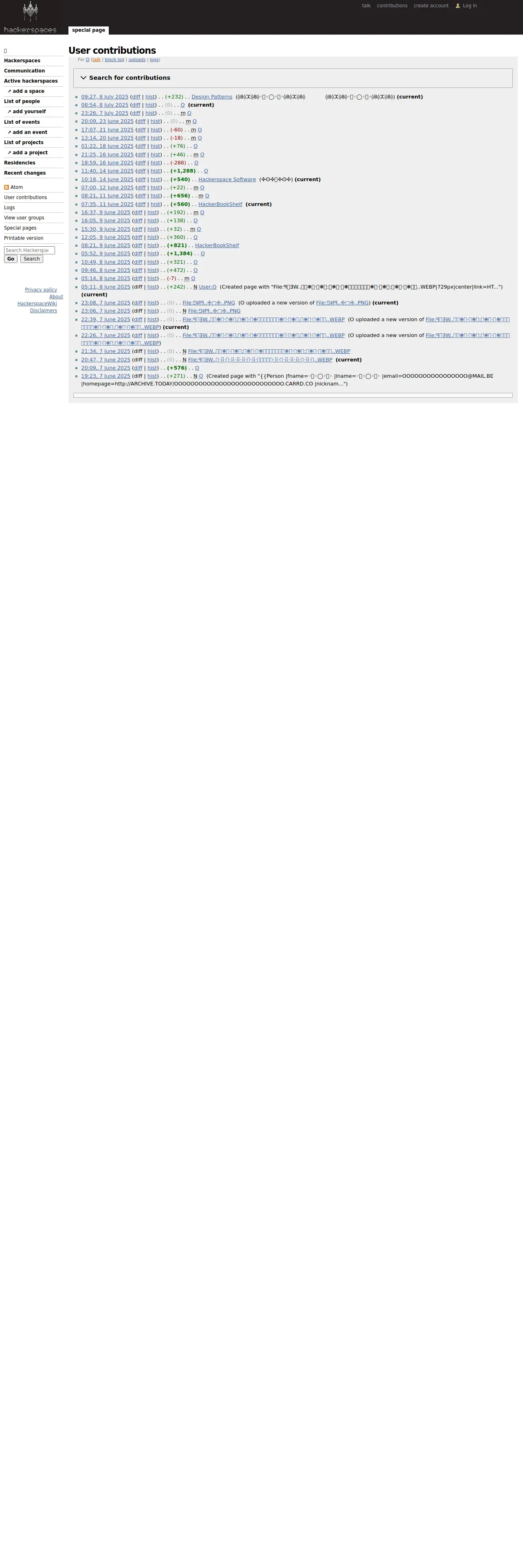 https://wiki.hackerspaces.org:443/Special:Contributions/O