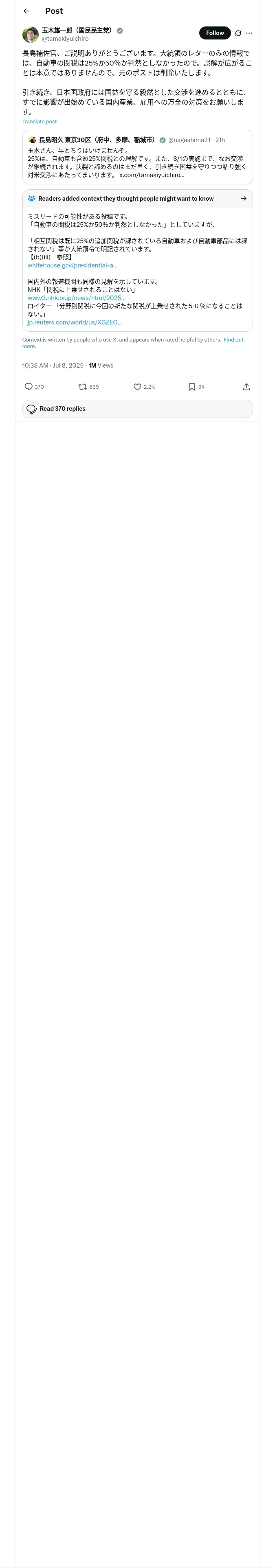 https://x.com:443/tamakiyuichiro/status/1942397778875015584
