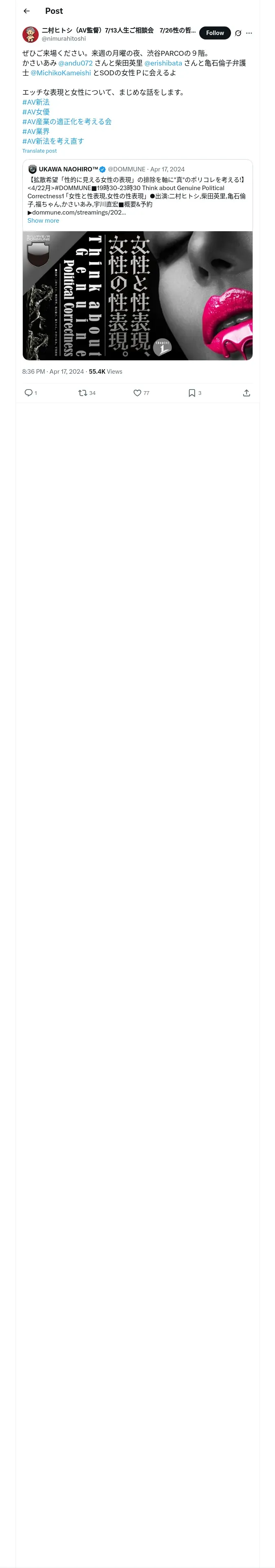 https://x.com:443/nimurahitoshi/status/1780561051848982935