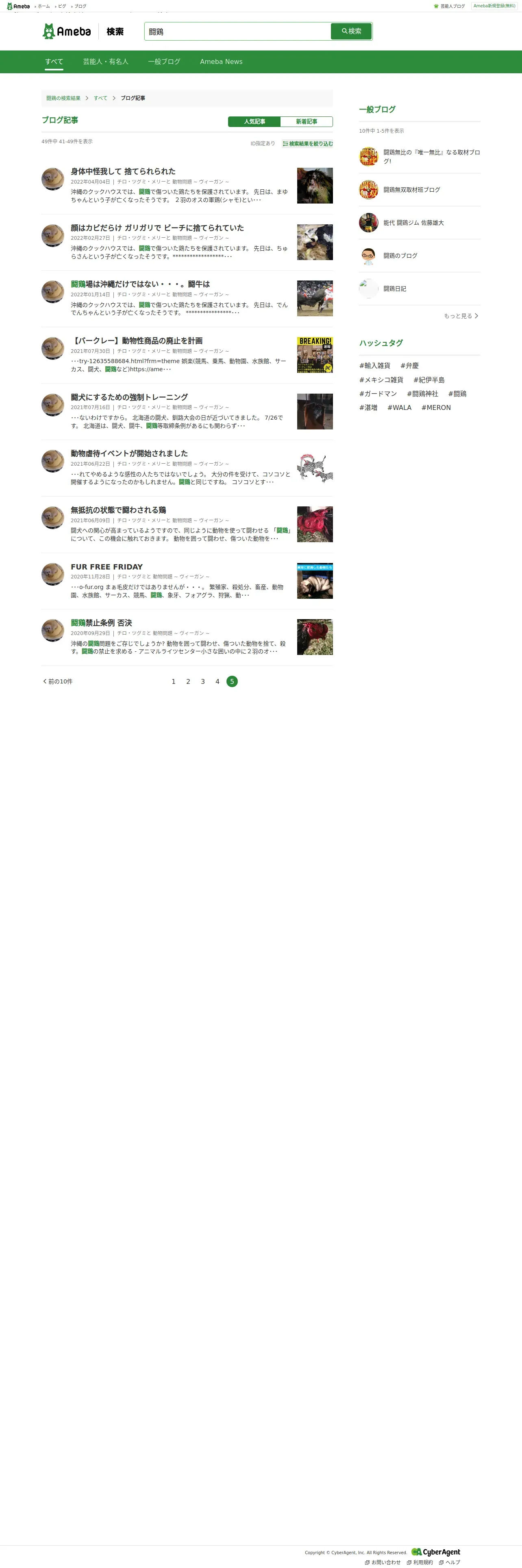https://search.ameba.jp:443/search/entry/%E9%97%98%E9%B6%8F.html?aid=chiro-tsugu&p=5