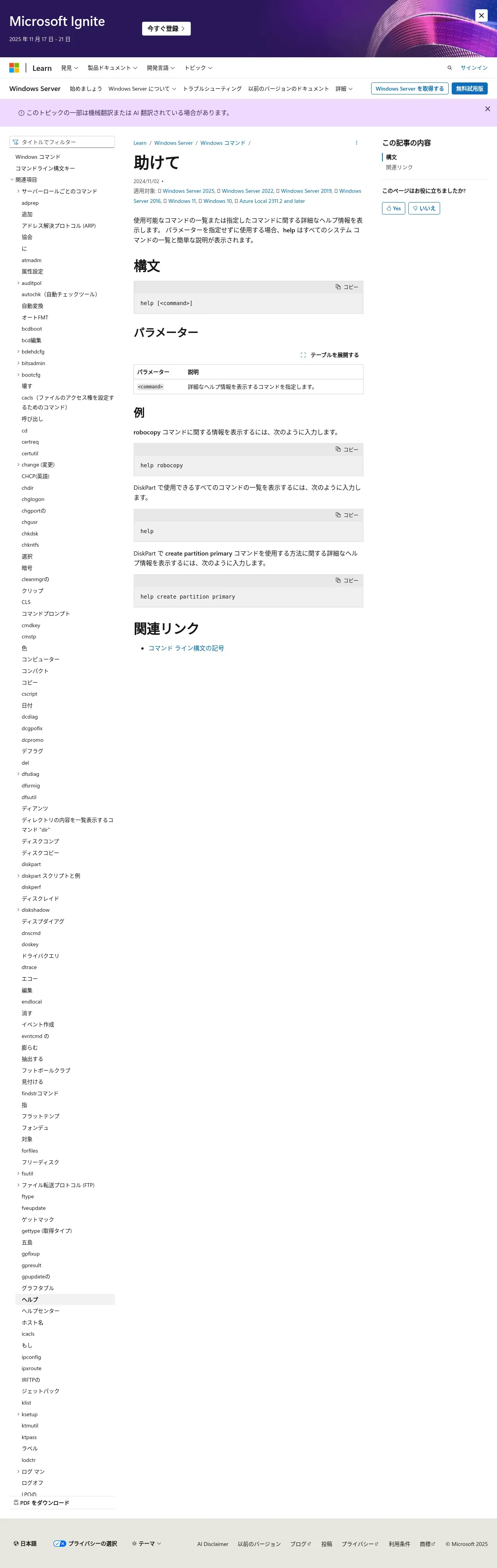 https://learn.microsoft.com:443/ja-jp/windows-server/administration/windows-commands/help