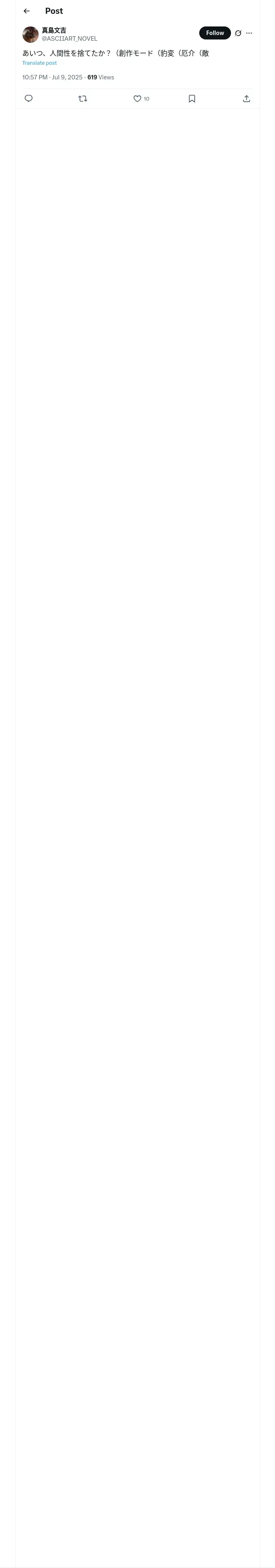 https://x.com:443/ASCIIART_NOVEL/status/1942946273037877743