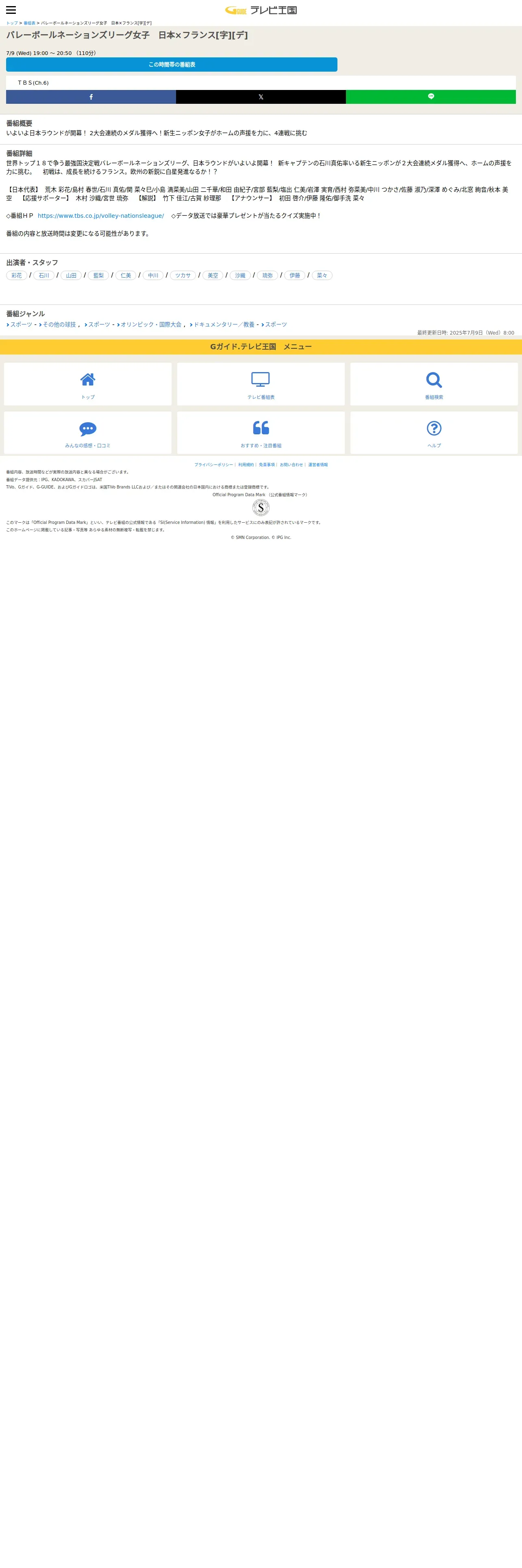 取得元URL: https://www.tvkingdom.jp:443/sp/schedule/101048202507091900.action