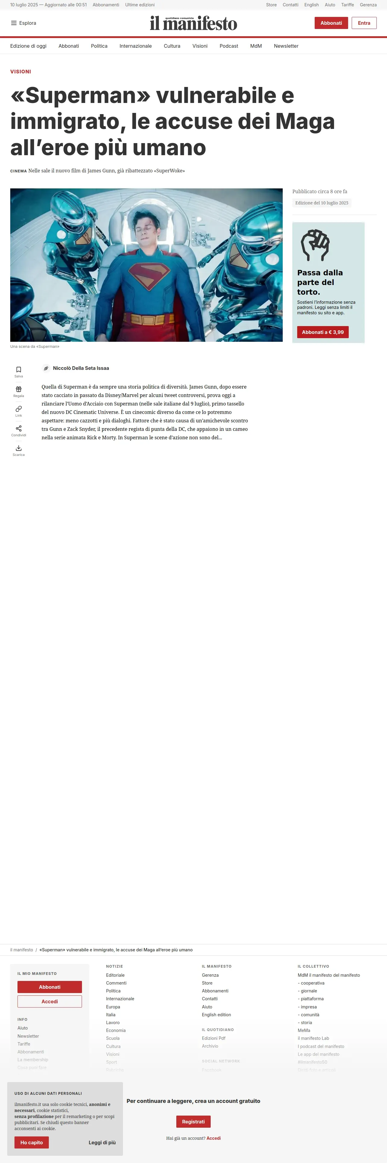 https://ilmanifesto.it:443/superman-vulnerabile-e-immigrato-le-accuse-dei-maga-alleroe-piu-umano