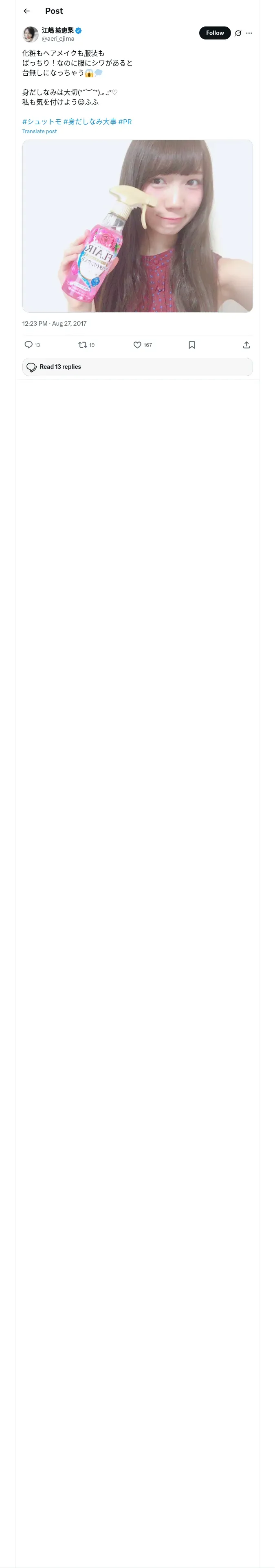 取得元URL: https://x.com:443/aeri_ejima/status/901646398721900544