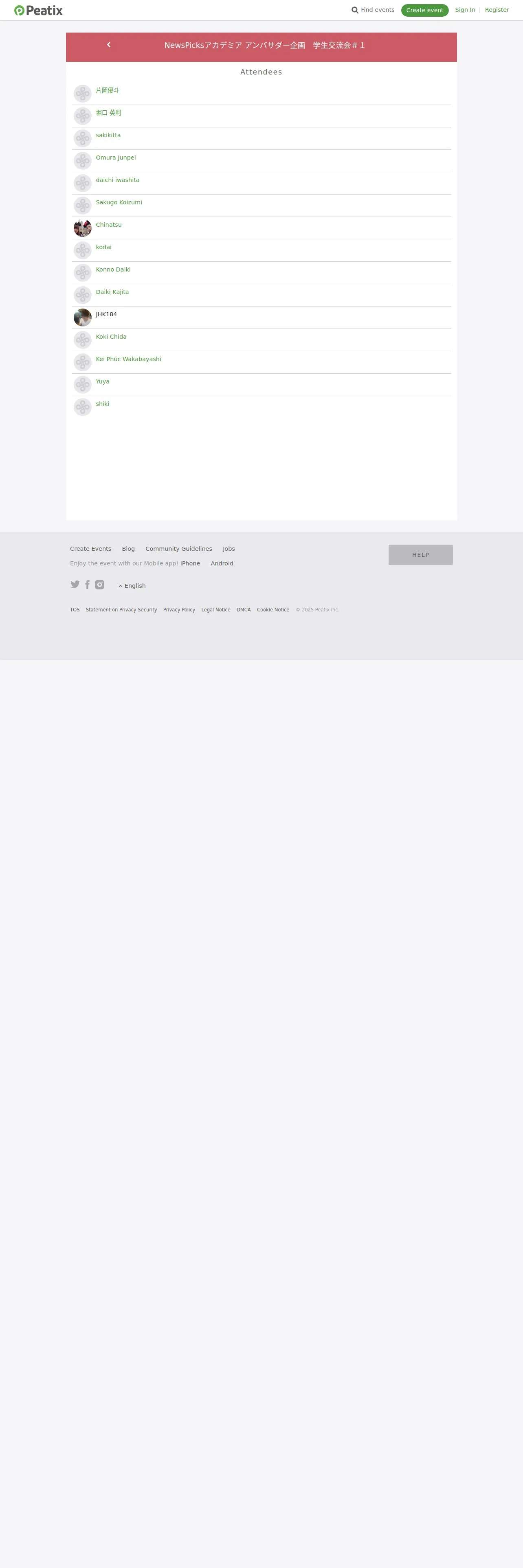 取得元URL: https://peatix.com:443/event/374916/attendees?last_id=2647345
