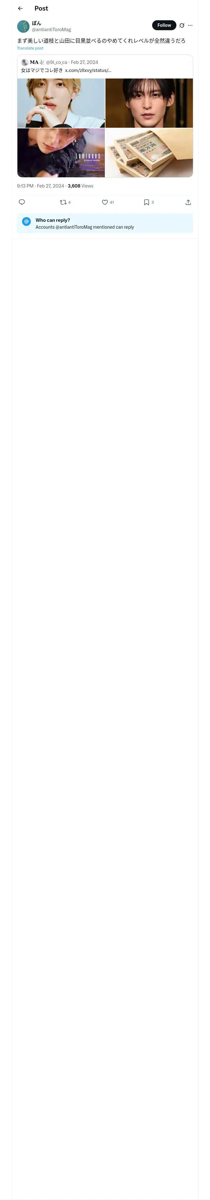 https://x.com:443/antiantiToroMag/status/1762450985908384032?t=-xiPLr5WhWQ0YpLZsxjirQ&s=19