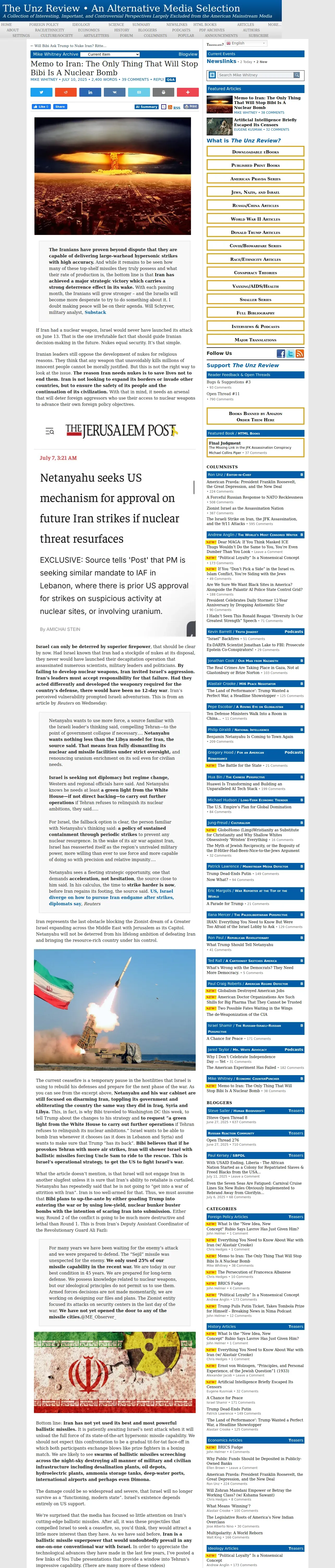 https://www.unz.com:443/mwhitney/memo-to-iran-the-only-thing-that-will-stop-bibi-is-a-nuclear-bomb/