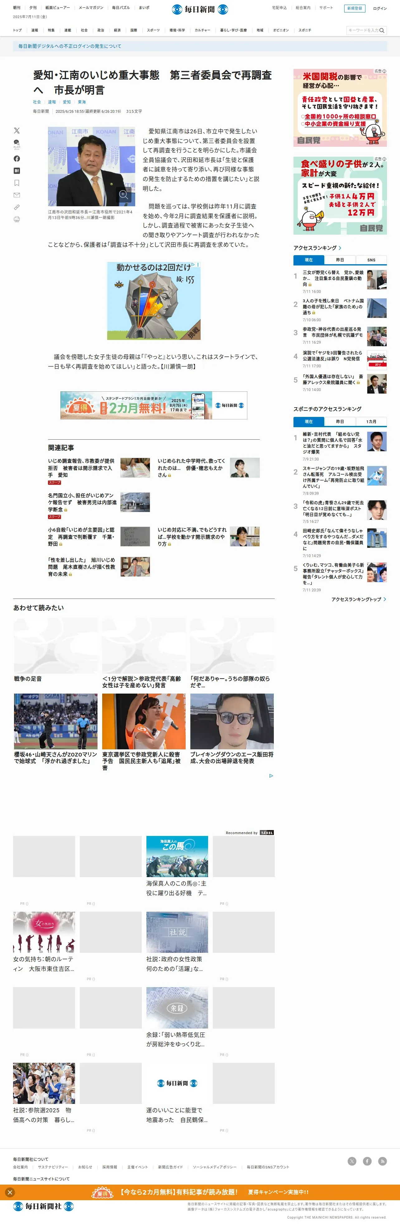 https://mainichi.jp:443/articles/20250626/k00/00m/040/279000c