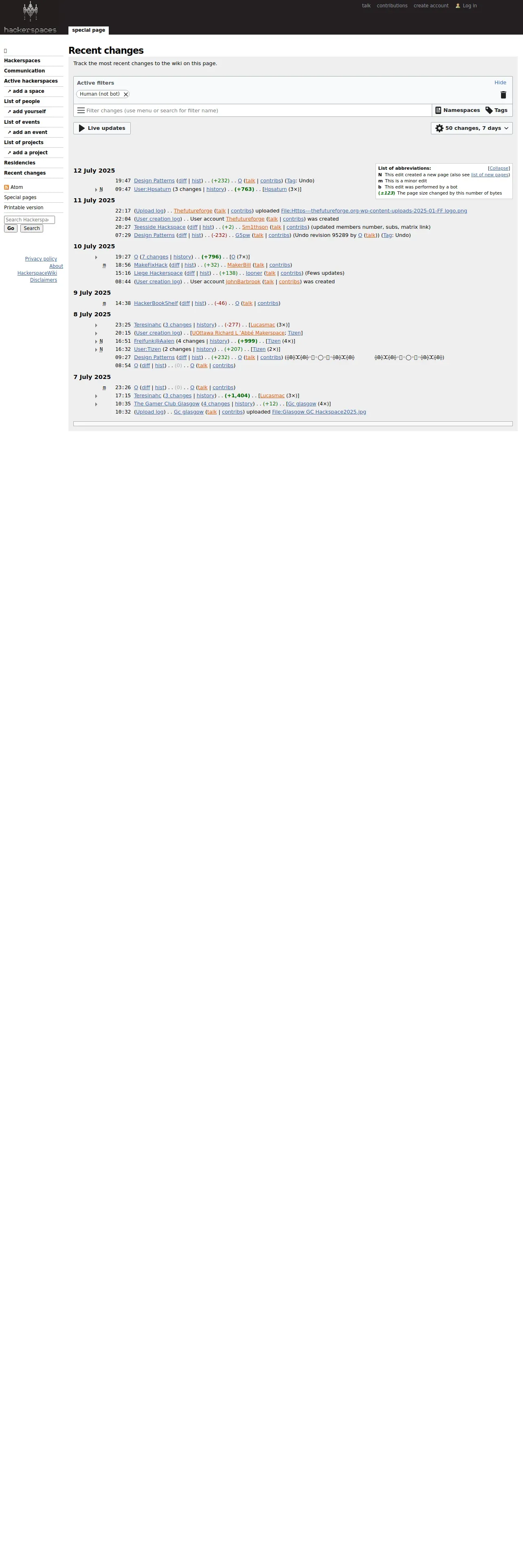 取得元URL: https://wiki.hackerspaces.org:443/Special:RecentChanges?hidebots=1