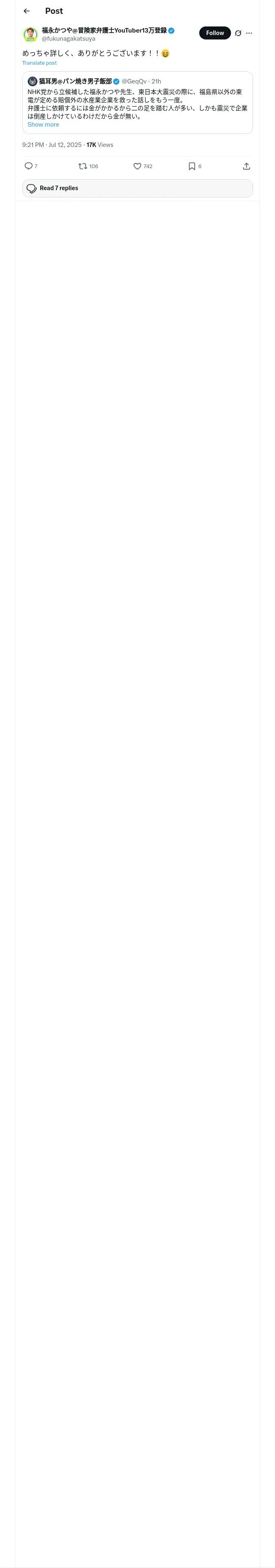 取得元URL: https://x.com:443/fukunagakatsuya/status/1944009281269035115
