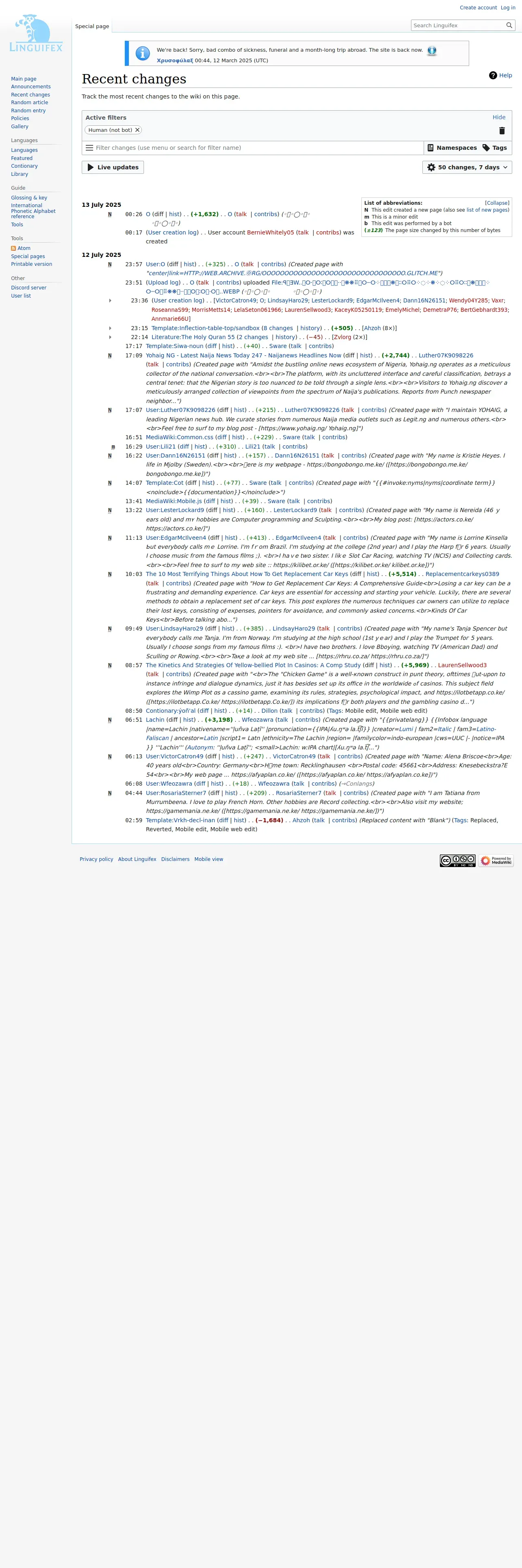 https://linguifex.com:443/wiki/Special:RecentChanges?hidebots=1