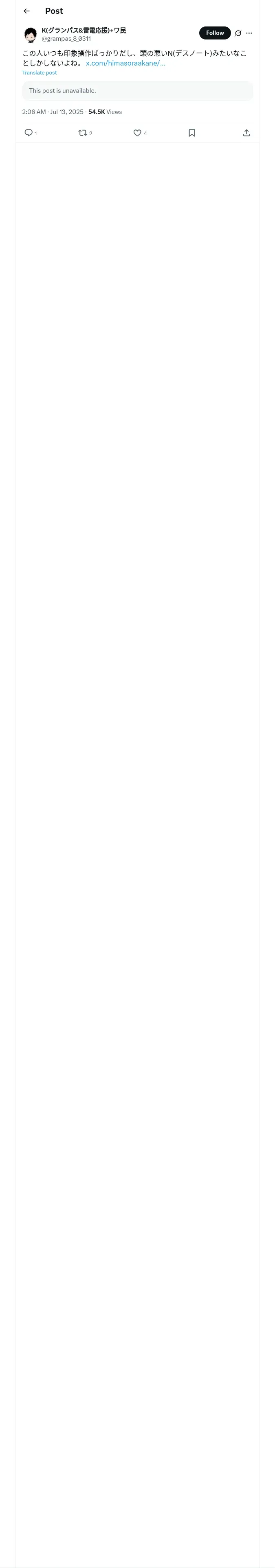 取得元URL: https://x.com:443/grampas_8_0311/status/1944080845717090324