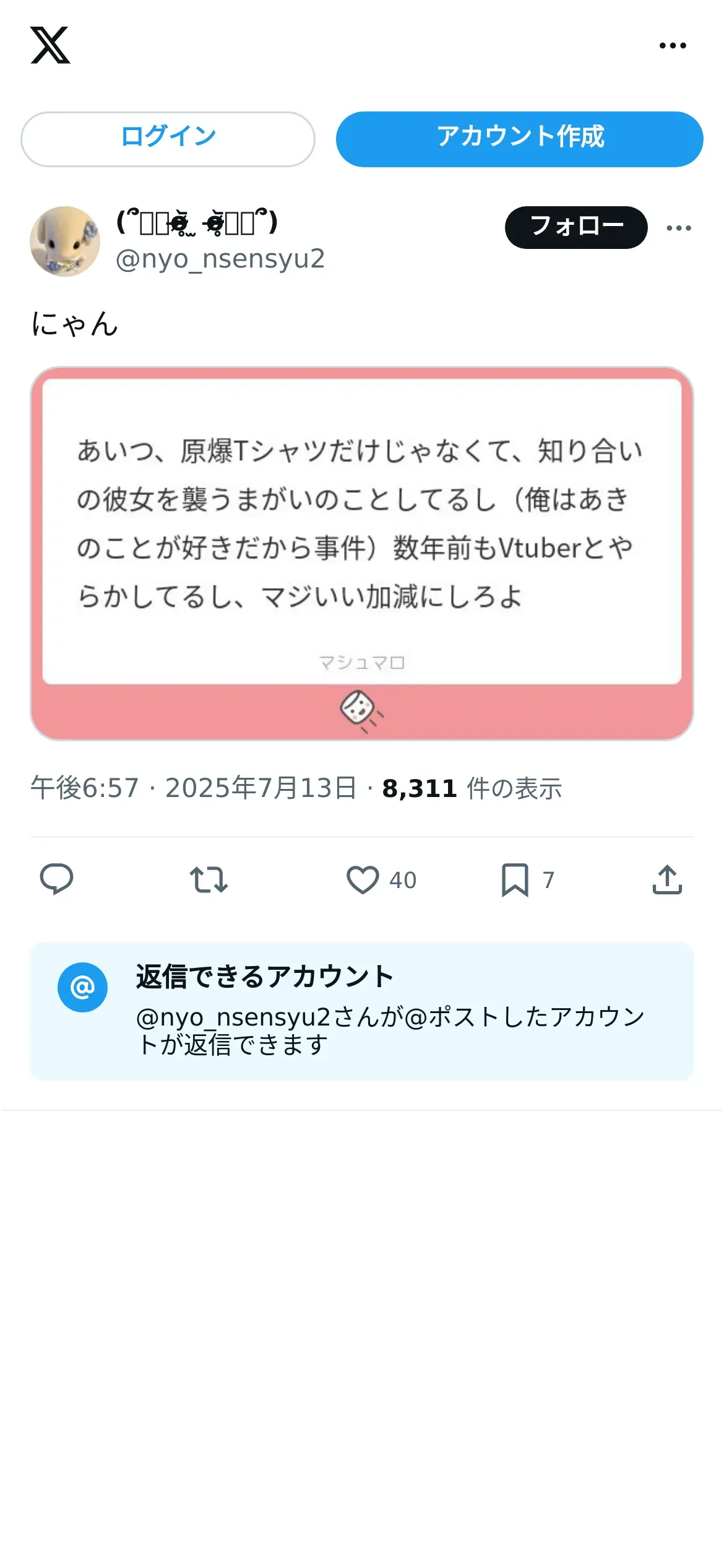 https://x.com:443/nyo_nsensyu2/status/1944335259522265457?t=qeg_B-iR6qc9-qYBwAM42w&s=19