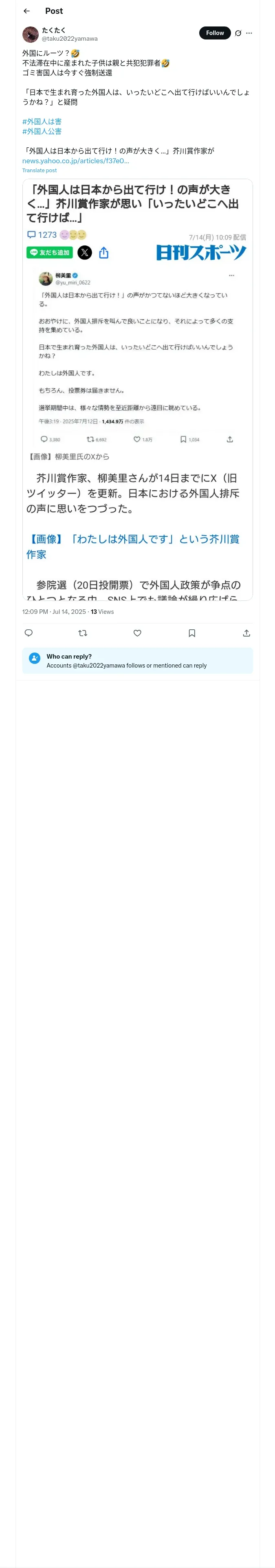 取得元URL: https://x.com:443/taku2022yamawa/status/1944595131962634541