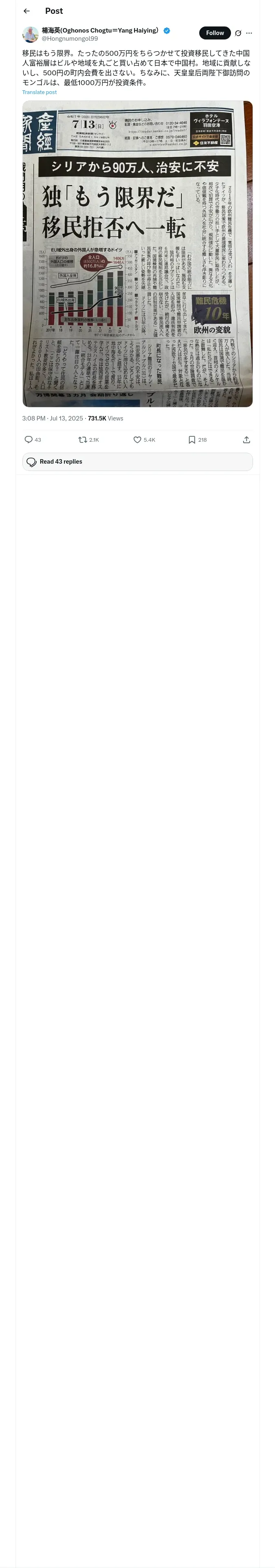 取得元URL: https://x.com:443/Hongnumongol99/status/1944277807414010207