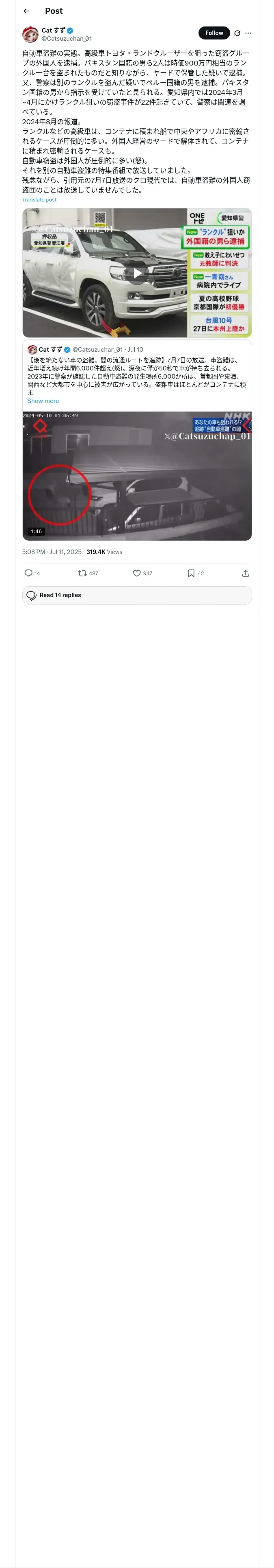 取得元URL: https://x.com:443/Catsuzuchan_01/status/1943583145426850070