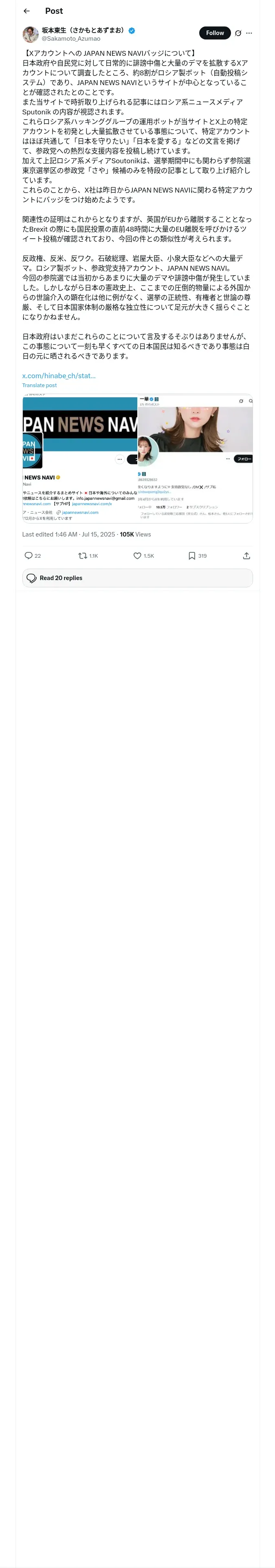 https://x.com:443/Sakamoto_Azumao/status/1944800581044039963