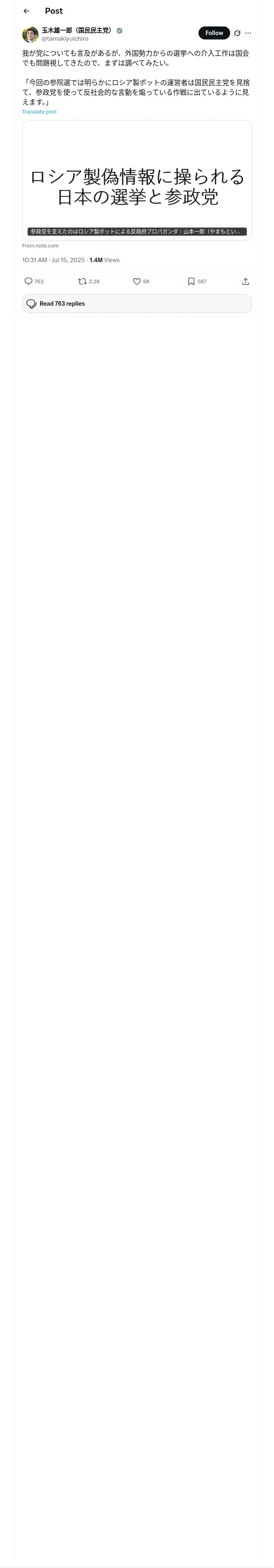https://x.com:443/tamakiyuichiro/status/1944932890338574390