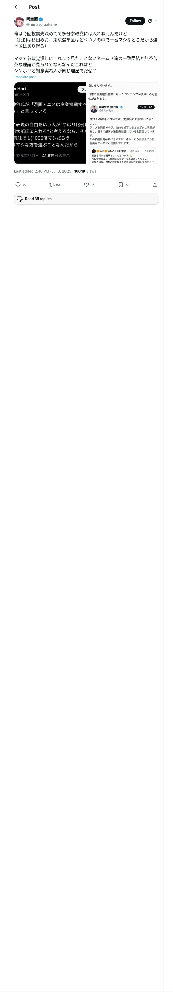 https://x.com:443/himasoraakane/status/1942460229981200689?t=Yi6m60CbWDxIB5YkCNTmMA&s=19