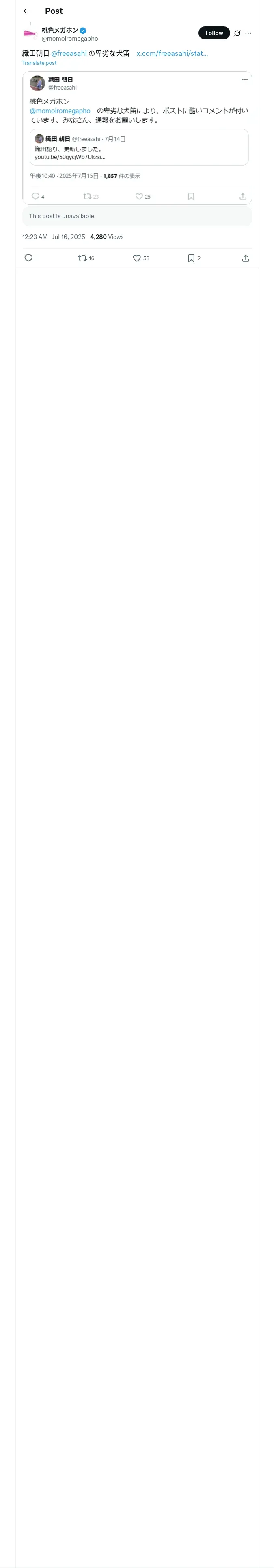 取得元URL: https://x.com:443/momoiromegapho/status/1945142131313504590