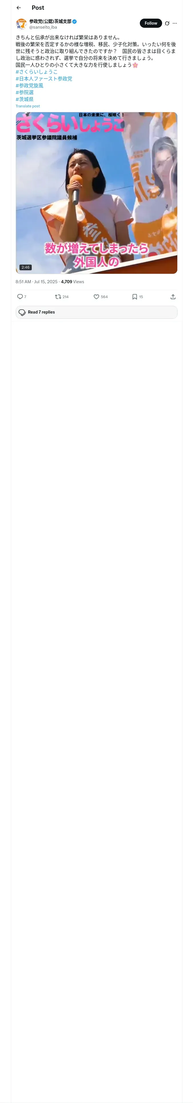 https://x.com:443/sanseito_iba/status/1944907556675027300
