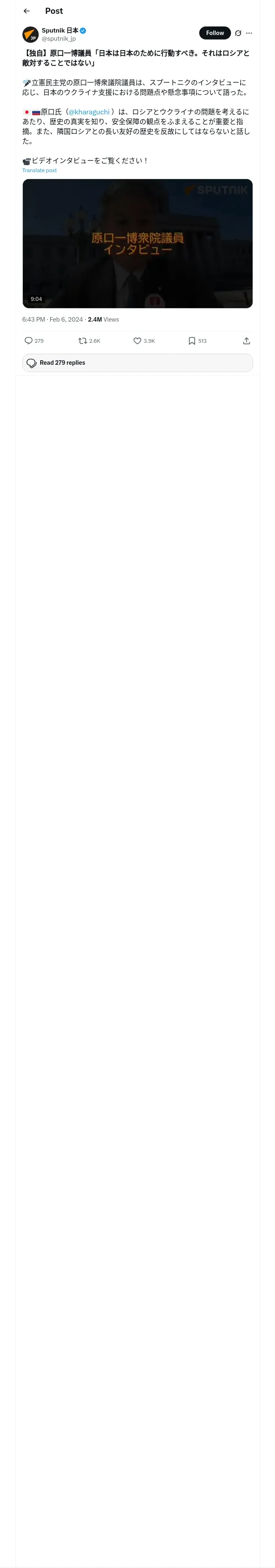 取得元URL: https://x.com:443/sputnik_jp/status/1754803085262647303