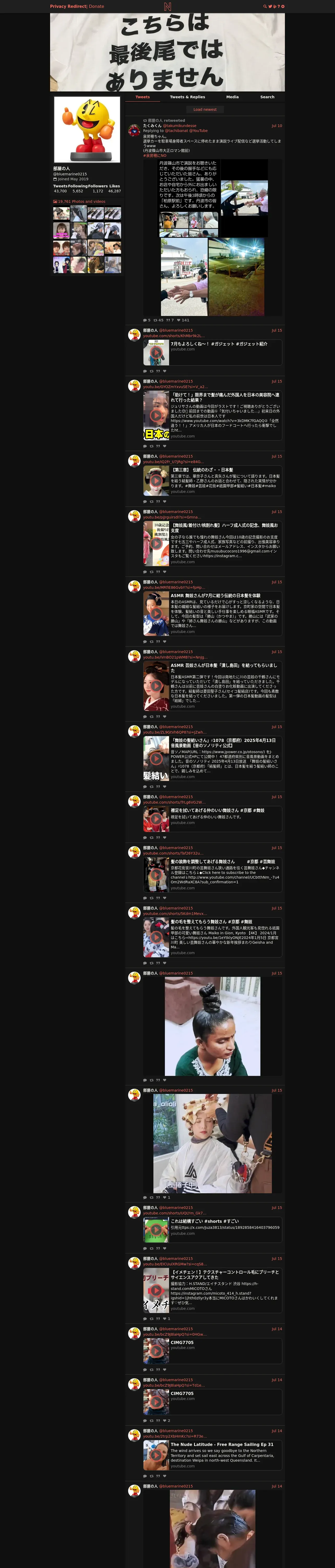 https://nitter.privacyredirect.com:443/bluemarine0215?cursor=DAAHCgABGwAU9iB___4LAAIAAAATMTk0NTQzMDI2NzQzMjQwNzM0NggAAwAAAAIAAA