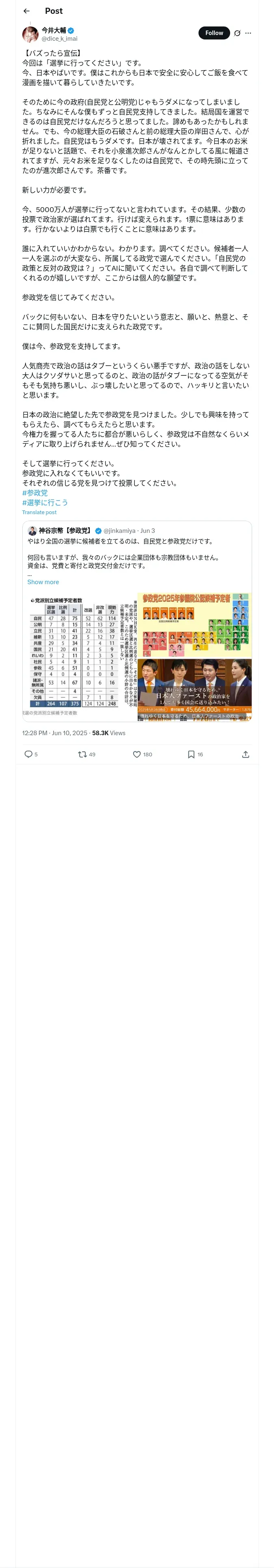 https://x.com:443/dice_k_imai/status/1932278748294111266?t=PF4JOXESlbd7BMW7A8JJZQ&s=19