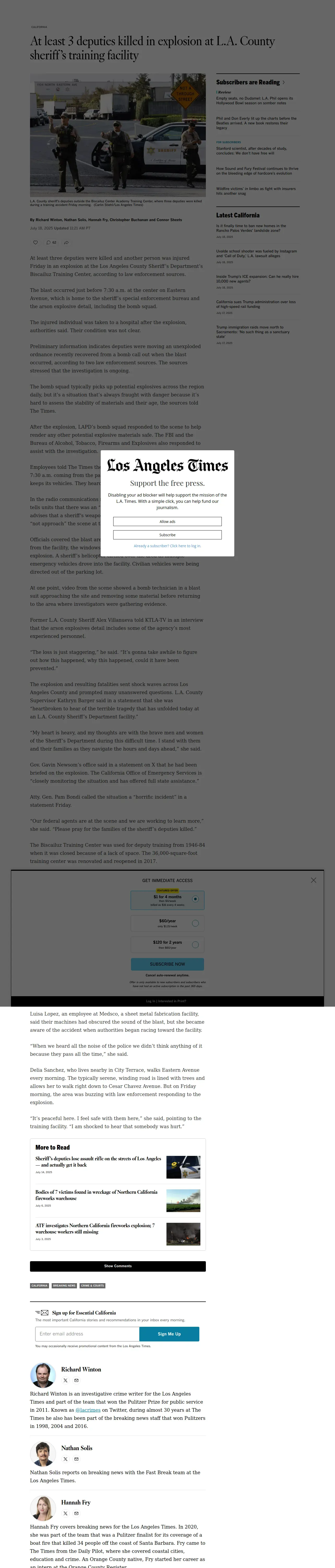取得元URL: https://www.latimes.com:443/california/story/2025-07-18/explosion-la-sheriff-training-facility