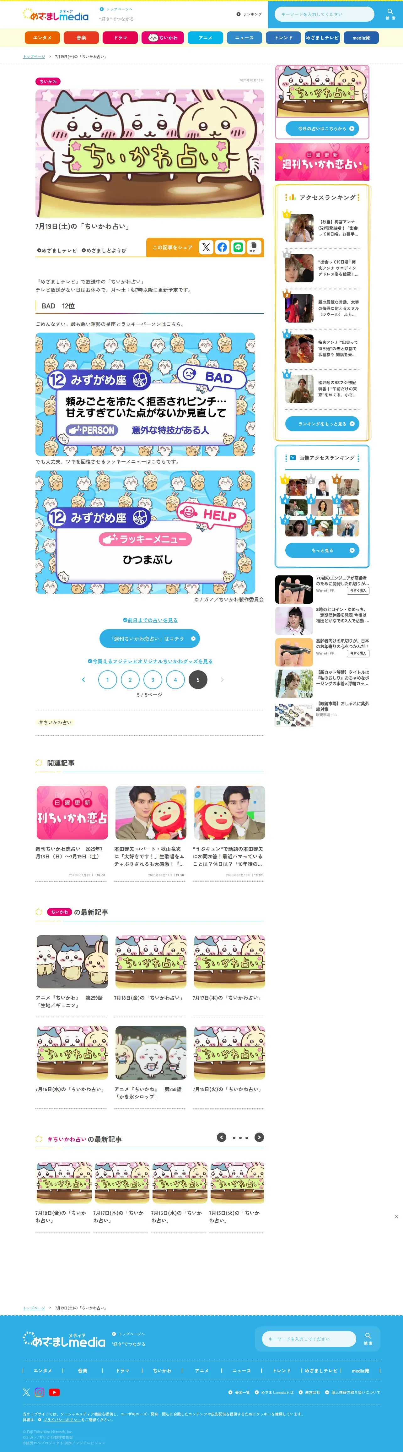取得元URL: https://mezamashi.media:443/feature/chiikawa-fortune-daily?page=5