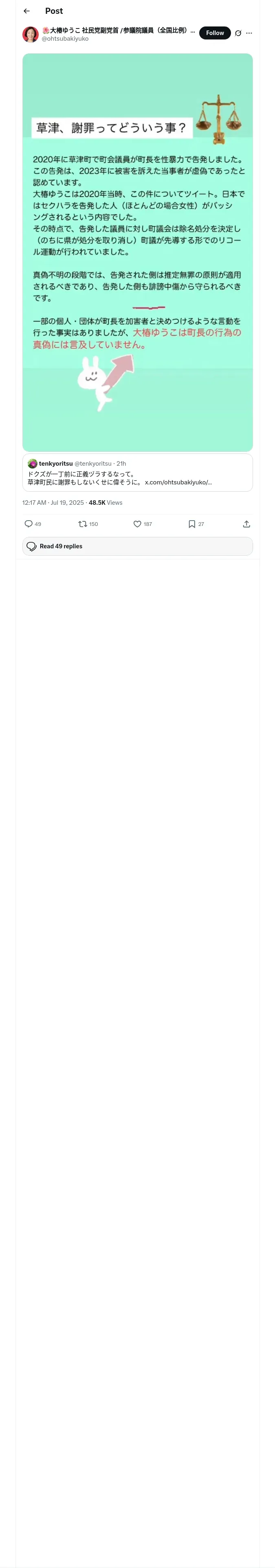 https://x.com:443/ohtsubakiyuko/status/1946227853655523492